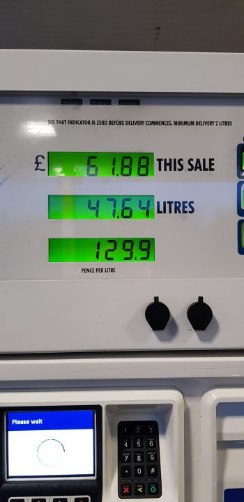 Final fill up before I leave. Interestingly, the MX5 is listed as having a 45 litre tank